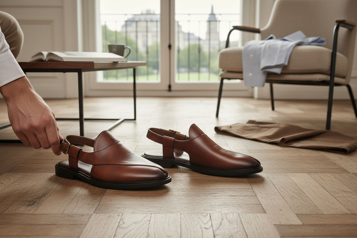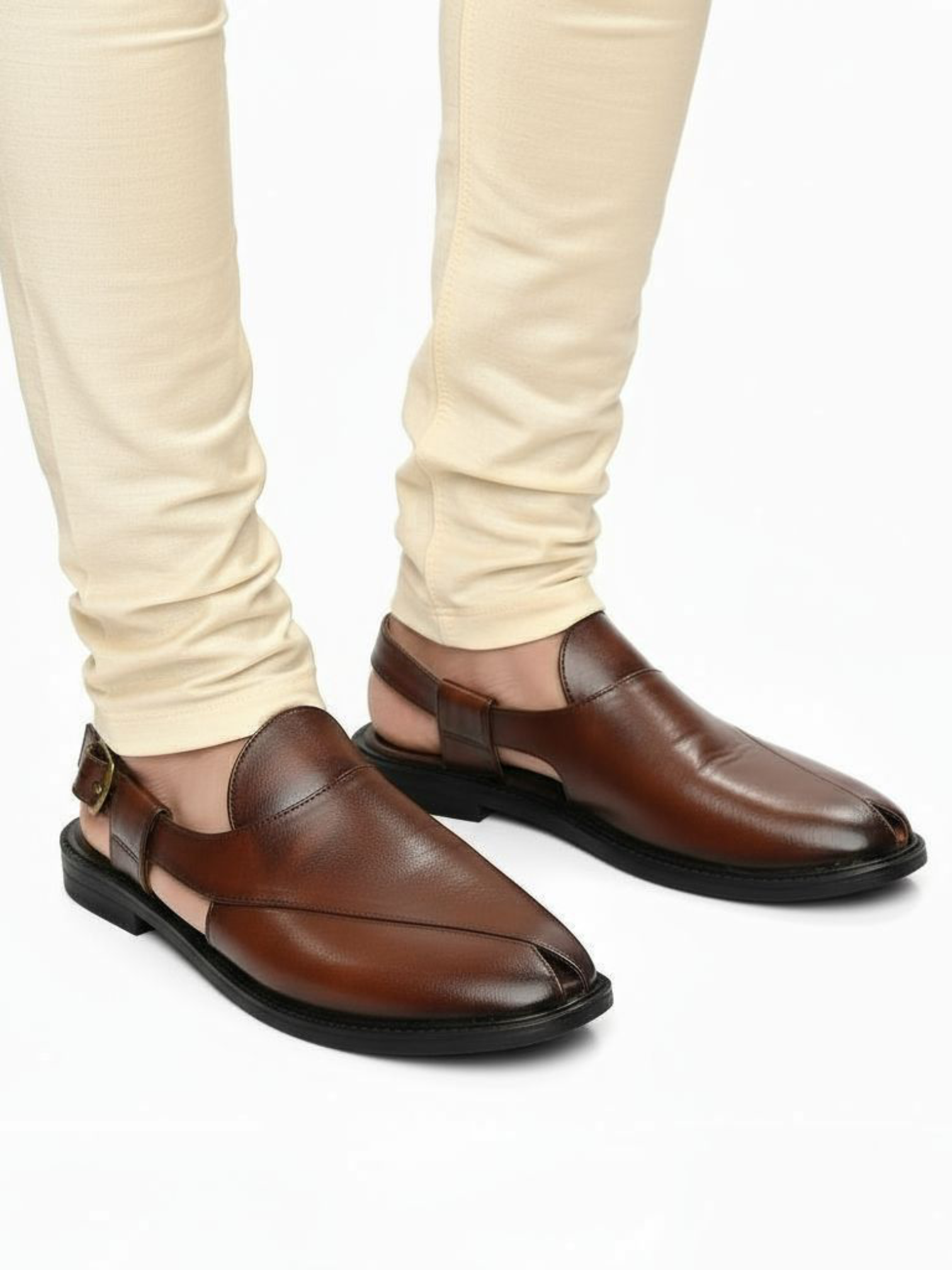 (Copy) (Copy) Handcrafted Royal Black Textured Norozi Peshawari with Elastic Kaptaan Buckle & Elevated Ethnic High Heels